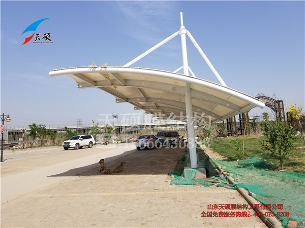 膜結構(Membrane)是20世紀中期發展起來的一種新型建筑結構形式,膜結構是由多種高強薄膜材料及加強構件(鋼架、鋼柱或鋼索)通過一定方式使其內部產生一定的預張應力以形成某種空間形狀,作為覆蓋結構,并能承受一定的外荷載作用的一種空間結構形式。在我們的身邊用途非常廣泛,比如車棚、看臺、景觀等。膜結構作為一種新型的建筑結構形式,那么膜結構的“膜”是一種什么材料呢?